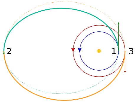 astrodinámica, Hohmann, maniobra, orbita, transferencia elíptica