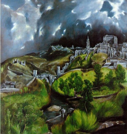 El artefacto hidráulico elevaba el agua del Tajo hasta el Alcazar,100 metros por encima, en el cuadro del Greco con una vista de Toledo, se ve el artificio de Juanelo.