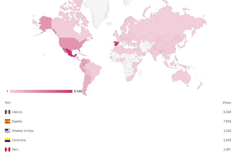 Aquí os dejo el ranking de los posts más visitados en mi blog, visitas a lo largo de los meses y los países con más visitas, en el 2021 he generado 45 posts con 35.745 visitas.