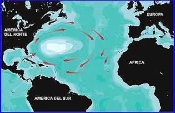En la América precolombina, las rutas atlánticas del Viejo Mundo hacia América, determinadas por las corrientes y los vientos marítimos: 1. ruta del Atlántico del norte, 2. ruta del Atlántico medio y ruta del Atlántico del Sur. según Romeo H. Hristov y Santiago Genovés T.