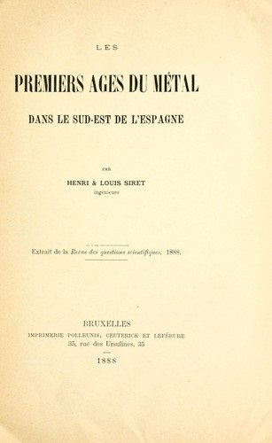Siret E. y L.( 1888) «Les premiers ages du metal dans le sud-est de l’Espagne», Unversity of Toronto, Bruxelles, 1888