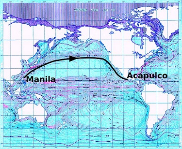 Desde Acapulco ponía rumbo al sur y navegaba entre los paralelos 10 y 11, subía luego hacia el oeste y seguía entre los 13 y 14 hasta las Marianas, de aquí a Cavite, en Filipinas. En total cubría 2.200 leguas a lo largo de 50 a 60 días.